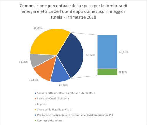 Nel secondo caso (possessori di partita IVA) la tassazione è del 22%, tenendo in considerazione anche gli oneri di sistema, come ad esempio la quota di distribuzione e di gestione del contatore.